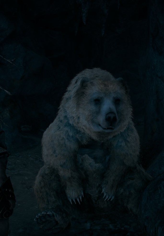 After I gather all the pointless clues, I find him in a cave with an Alpha bear. My MO is now to tame these majestic beasts so I can complete the location, then let them go. If I need random pelts for upgrades I can just take out some boars and wolves. In any case, the artist is well protected by this bear, but I find his hidey hole and get him to confess. He won’t do it again, because he does actually like Phoenix. He was just commissioned by the Spartans and/or Athenians (I forget) to get rid of her. I make him pinky promise not to do any more graffiti and the matter is settled.